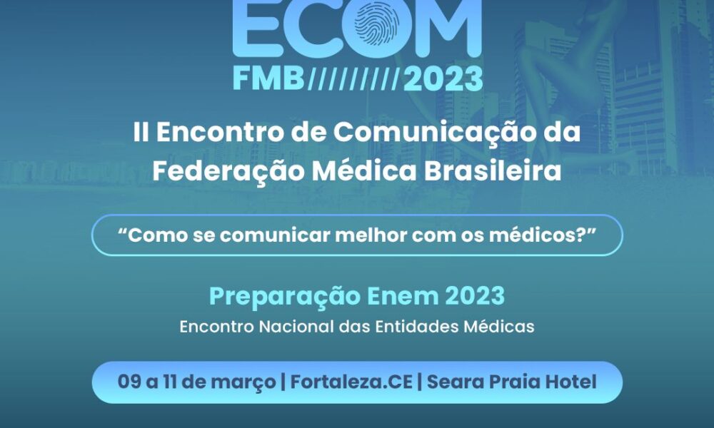 A Federação Médica Brasileira (FMB) e o Sindicato dos Médicos do Ceará realizam, entre os dias 9 a 11 de março, no Seara Praia Hotel, a segunda edição do Encontro de Comunicação da FMB. A edição traz o tema “Como se comunicar melhor com os médicos?” e a preparação para o Encontro Nacional das Entidades Médicas (ENEM), com o debate das principais pautas da categoria e indicação dos delegados.