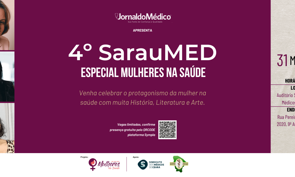 O Jornal do Médico, em parceria com a Sociedade Brasileira de Médicos Escritores (SOBRAMES) – Regional Ceará e com o apoio do Sindicato dos Médicos do Ceará, realiza no dia 31 de março o 4º SarauMED Especial Mulheres na Saúde. O evento marca o encerramento das ações do 4º Summit Mulheres na Saúde, que, ao longo do mês de março, promoveu uma programação especial com revista impressa, vídeos com grandes mulheres da área da saúde, postagens destacando o protagonismo feminino, artigos sobre Saúde da Mulher e a iniciativa SocialMED – projeto de responsabilidade social do Jornal do Médico que oferece serviços de saúde voluntários.