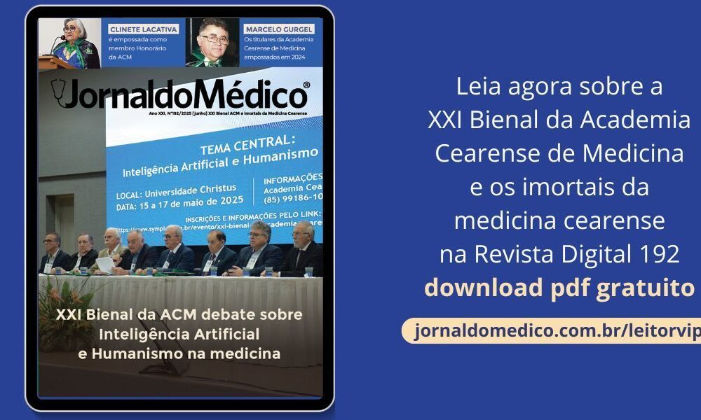 A nova edição da Revista Jornal do Médico (Ano XXI, nº 192 – Junho/2025) já está disponível e presta uma merecida homenagem à Academia Cearense de Medicina (ACM), destacando a realização da XXI Bienal e o legado dos médicos empossados na instituição.